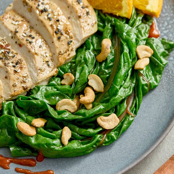 These cashews are made up of large pieces, making them a versatile option for chefs to easily incorporate in recipes without much preparation required. They can be used as a garnish or included in the batter of your favorite baked goods, such as cookies and brownies. These cashews are also a great addition to house-made trail mix and are an especially delicious pairing with savory foods. Try adding them to stir frys, curries, and stews or as a topping for salads and string beans. A great way to add extra flavor and protein to your dishes, these cashews are sure to be a hit in your busy kitchen!