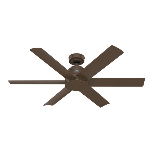 Ensure a comfortable environment for patrons and staff with this Hunter Fans Kennicott 52" indoor / outdoor ceiling fan! This fan features a clean, sleek design that complements large indoor spaces with a modern or industrial aesthetic, as well as casual transitional and outdoor areas of your commercial space. This ceiling fan is made with a durable cold-rolled steel housing that features a matte bronze finish. It's ideal for indoor use in guest bedrooms, living rooms, kitchens, offices, meeting rooms, recreation rooms, gyms, break rooms, and lobbies. It's also damp-rated for use in garages and bathrooms or for outdoor use in covered patios, screened porches, mudrooms, and other areas protected from rain, snow, water, and moisture.