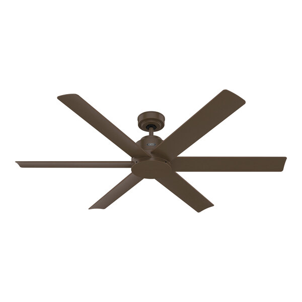 Ensure a comfortable environment for patrons and staff with this Hunter Fans Kennicott 60" indoor / outdoor ceiling fan! This fan features a clean, sleek design that complements some of the largest indoor spaces with a modern or industrial aesthetic, as well as casual transitional and outdoor areas of your commercial space. This ceiling fan is made with a durable cold-rolled steel housing that features a matte bronze finish. It's ideal for indoor use in great rooms, living rooms, open-concept kitchens, meeting rooms, recreation rooms, gyms, and lobbies. It's also damp-rated for use in garages or for outdoor use in covered patios, screened porches, mudrooms, and other areas protected from rain, snow, water, and moisture.