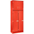 This locker is easy to install, arriving fully assembled and ready to use! Inside the lower, 14" wide compartments are sturdy steel double "J" hooks to hold coats, bags, and other personal belongings. The lower compartments are accessed by two 3/4" thick solid doors with 180 degree swing open features. These lower doors have self-latching padlock hasps for added security, while the upper swing-open doors has convenient pull handles. Plus, the adjustable middle shelves provide even more storage opportunities. With this locker, your establishment can offer convenient, durable storage that keeps belongings neatly contained and out of the way.