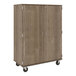 Provide a convenient and functional storage solution for employees and students alike with this I.D. Systems 67" tall dark elm closed shelf storage cart with lock 80185F67020! This specific model features an attractive dark elm woodgrain finish, making it ideal for schools, childcare centers, or break rooms. Not to mention, its durably constructed, 3/4" thick industrial wood composite core with a thermofused laminate seal ensures the unit is equipped for frequent commercial use and can be easily cleaned and disinfected. The superior structure of this cart means it's built to last, so you can transport heavy files and boxes with ease.
