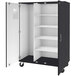 This cabinet has hinged doors that can lock, preventing unwanted access. It can support up to 500 lb. of evenly distributed weight. It includes 5" casters that are specially designed to roll smoothly over thresholds or uneven surfaces. Additionally, the cabinet ships fully assembled with casters already attached and trays installed, so set-up is simple and easy.
