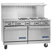 The Imperial Range Pro Series IR-G60T-E 60" electric range with 60" griddle and 2 standard ovens is designed to be a versatile and efficient addition to your establishment! This unit's 60" griddle top is designed with a highly polished, 3/4" thick steel plate surface, making it perfect for cooking a variety of foods from pancakes and eggs to grilled cheese and even burgers! Heating elements are positioned across the griddle section, keeping the temperature even and consistent. The steel construction also provides the unit with excellent heat retention and quick recovery. Plus, this unit features a 4" wide grease trough and large, removable grease can for easy cleaning.