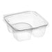 Inline Plastics Safe-T-Fresh 21.5 oz. Tamper-Resistant, Tamper-Evident Square Hinged 2-Compartment Deep Snack Container - 252/Case