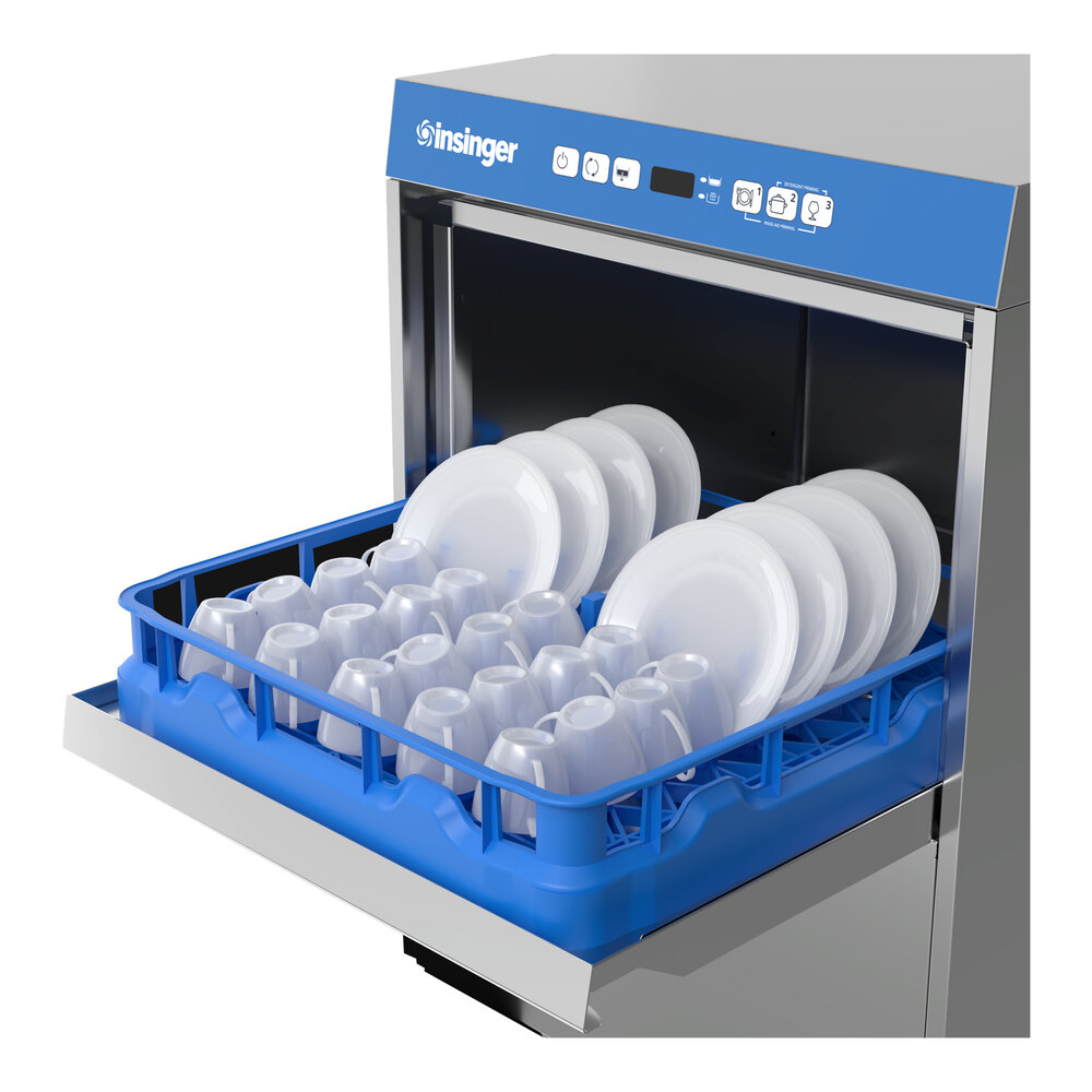 Designed for versatility, this dishwasher is made for convenient access with a 13 3/16" door opening for maximum clearance. It includes 1 flat dish rack for plates, 1 peg dish rack for glasses, and 1 dish rack for cups, as well as 2 cutlery cups to ensure organized washing. It also has a 6.1 gallon wash tank capacity. This item washes up to (30) 20" x 20" racks per hour for 750 dishes or 68 meals per hour, using only 0.8 gallons of water per rack at 20 PSI, for 25.5 gallons of water per hour. This 3 phase dishwasher is compatible with select Insinger accessories like additional racks, equipment stands, and drying racks (sold separately).