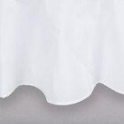 A great 120" white round hemmed polyspun cloth table cover is lovely. It is well constructed and very durable cloth. It is to dry clean and use over and over. A perfect addition to our catering business.