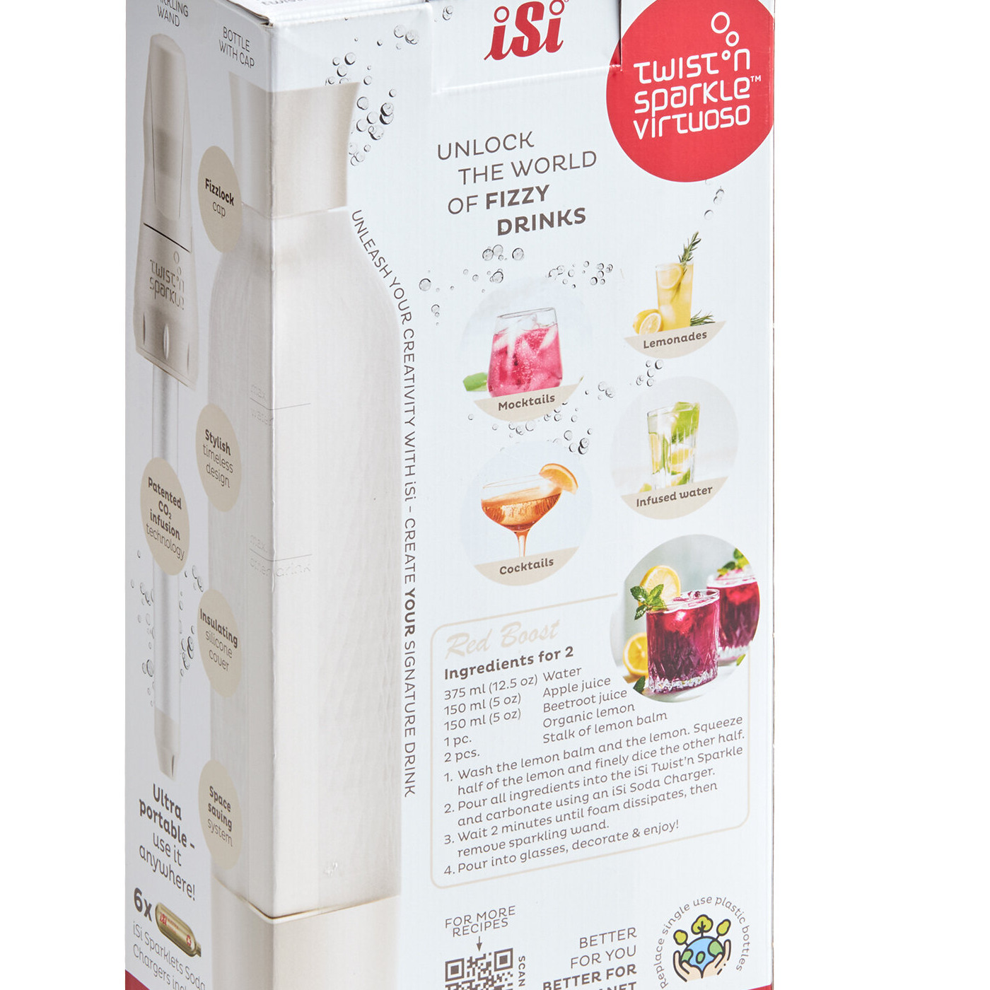 Whether you're looking to enhance your cocktails, create unique beverages, or refresh customers with a fizzy drink on a hot day, the iSi Twist'N Sparkle Virtuoso system is the ideal solution. Perfect for use in restaurants, bars, and cafes, this system offers a convenient and efficient way to carbonate your favorite drinks with ease and precision.