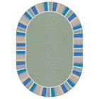 Add a vibrant touch to your classroom floor space with this Joy Carpets Kid Essentials Off The Cuff 7' 8" x 10' 9" sage rectangular area rug. This rug is perfect for group activities in elementary school classes. It features an eye-catching striped border design to engage students, creating an inviting spot for children and helping teachers to facilitate an organized and enriching group learning environment.