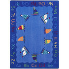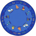 Add a vibrant touch to your classroom floor space with this Joy Carpets Kid Essentials Smooth Sailing 13' 2" multicolored round area rug. This rug is perfect for group activities in elementary school classes. It features a unique, sailboat design with an alphabet border, helping teachers to facilitate an organized and enriching group learning environment.