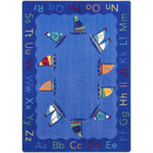 Add a vibrant touch to your classroom floor space with this Joy Carpets Kid Essentials Smooth Sailing 7' 8" x 10' 9" multicolored rectangular area rug. This rug is perfect for group activities in elementary school classes. It features a unique, sailboat design with an alphabet border, helping teachers to facilitate an organized and enriching group learning environment.