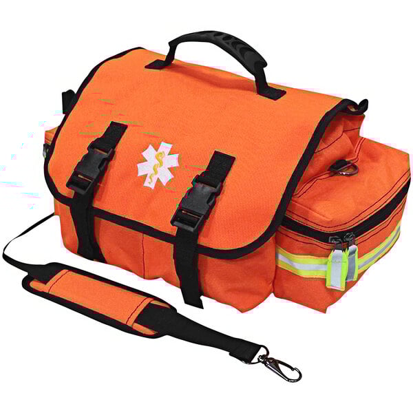 Ensure the safety of patients during trauma rescues and emergency medical procedures with this Kemp USA orange first responder bag. Made with nylon, this EMS bag is extremely durable and will stand up to the toughest applications in an emergency. It's designed to hold emergency medical supplies, tools, and instruments that help to treat your patient.