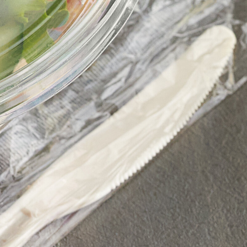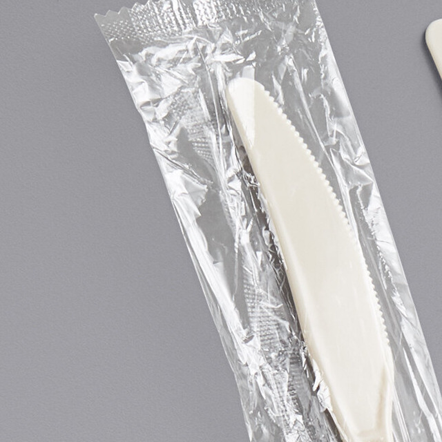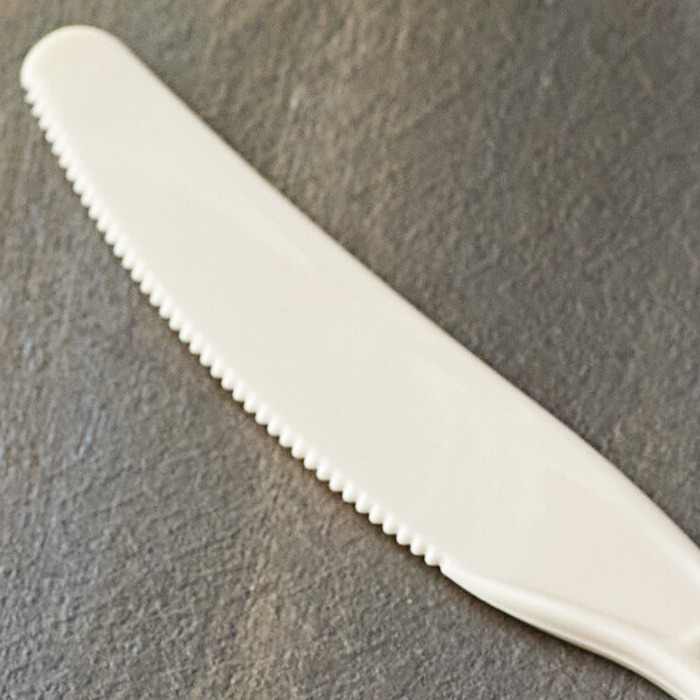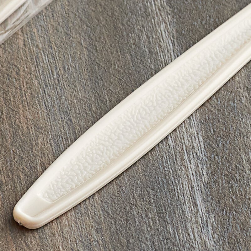 This disposable knife is extremely versatile and great for a wide variety of meals. You can give them to your customers in to-go boxes and take-out bags or fill your flatware bins with them for guests to grab on the go at your quick-serve restaurant. Use it to fill your flatware bins at your snack shack or concession stand or to complete your plastic cutlery setting.