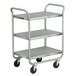 Safely transport up to 500 lb. of dirty dishes and restaurant supplies throughout your establishment with this Lakeside 222 stainless steel three shelf tubular utility cart! The tubular, U-shaped design provides durability and its reinforced edges provide extra strength for heavy loads, making this cart a perfect addition to any demanding restaurant environment!
