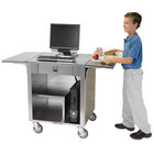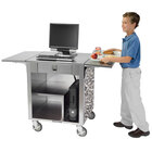 If you run a school cafeteria or self-serve buffet and are looking for a practical solution for housing your cash register or POS system, then look no further than this Lakeside 641 stainless steel cash register stand! Featuring a 33 1/2" wide top shelf and a computer compartment specially designed with a vented back to prevent your equipment from overheating, this cashier stand is designed to hold a traditional cash register or modern POS system. Two 12" fold down tray slides are located on either side of the top shelf, and these are height-adjustable to accommodate ADA requirements or to cater to young elementary school students.