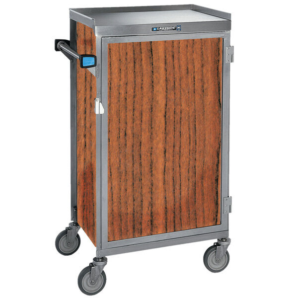 Lakeside 654VC Stainless Steel Six Tray Meal Delivery Cart With Victorian Cherry Finish