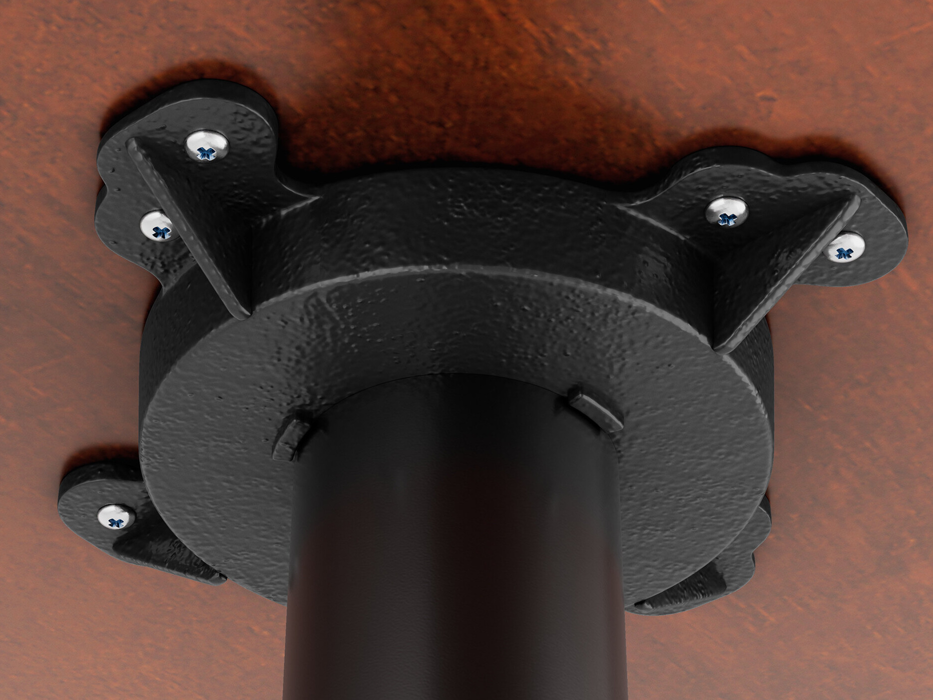 A steel column and rod extends the table top to standard height and is connected to the table top via a black, powder-coated 10" spider attachment that resists damage.