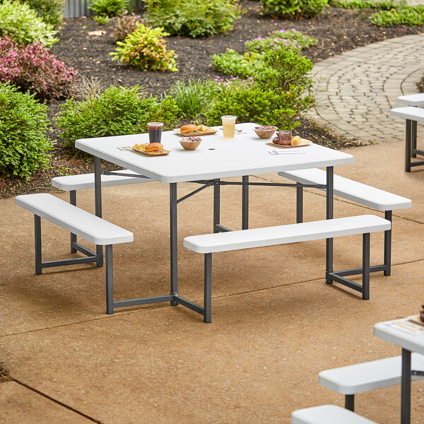 Lancaster Table & Seating 48" Square White Picnic Table with Attached Benches