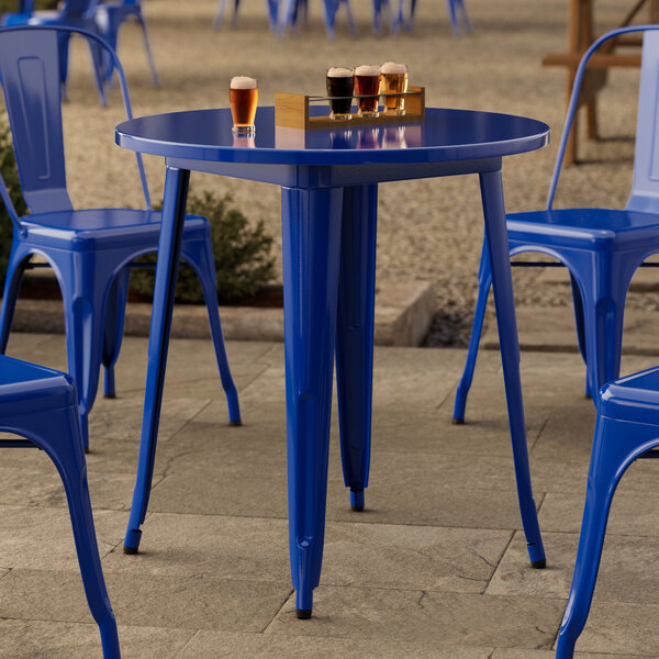 Lancaster Table & Seating Alloy 30" Round Blue Quartz Standard Height Outdoor Table