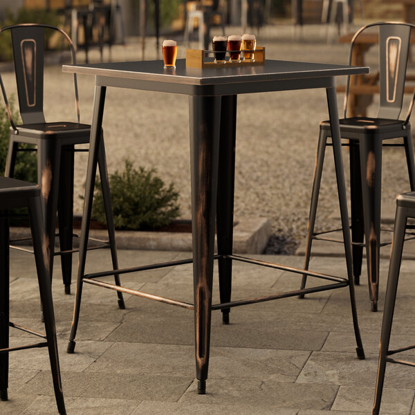Comfortable and stylish, this table is an excellent choice for your indoor or outdoor dining area. The distressed copper color adds a sleek, modern touch to any setting and is sure to be a contemporary design choice that guests love. To save you money on shipping costs, this table ships unassembled. All required assembly hardware is included, so you can quickly set it up in its proper space and let your guests enjoy!