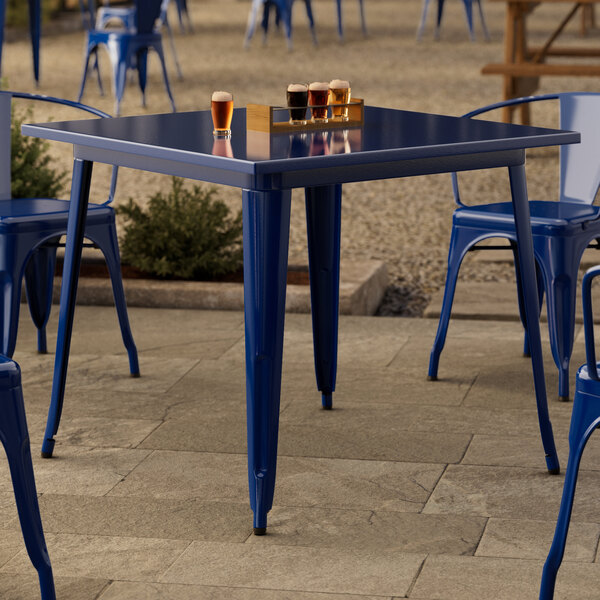 Comfortable and stylish, this table is an excellent choice for your indoor or outdoor dining area. The sapphire color adds a fun, colorful touch to any setting and is sure to be a contemporary design choice that guests love. To save you money on shipping costs, this table ships unassembled. All required assembly hardware is included, so you can quickly set it up in its proper space and let your guests enjoy!