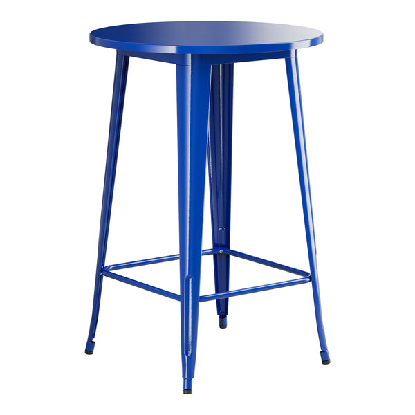 This table is made of durable steel and coated to withstand years of use. The vibrant blue quartz color adds a fun, colorful touch to any setting and is sure to be a contemporary design choice that guests love. Comfortable and stylish, this strong yet light weight bar-height table is an excellent choice for your indoor or outdoor dining area. To save you money on shipping costs, this table ships unassembled. All required assembly hardware is included so you can quickly set it up in its proper space and let your guests enjoy!