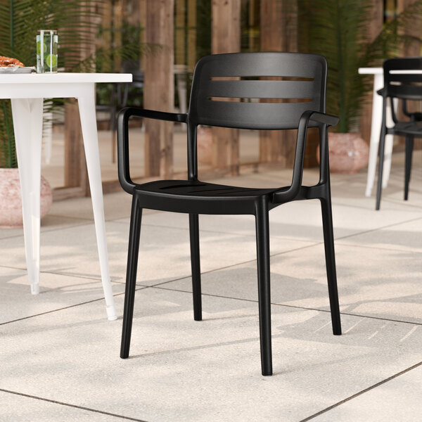 - Item #: 427altarmbkLancaster Table & Seating Alto Black Stone Slat Back Resin Arm Chair