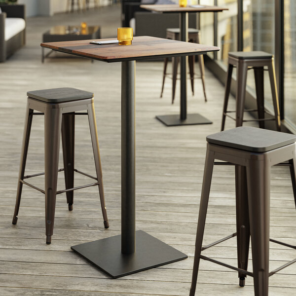 Lancaster Table & Seating Excalibur 28" Square Bar Height Table with Textured Farmhouse Finish and Square Base Plate