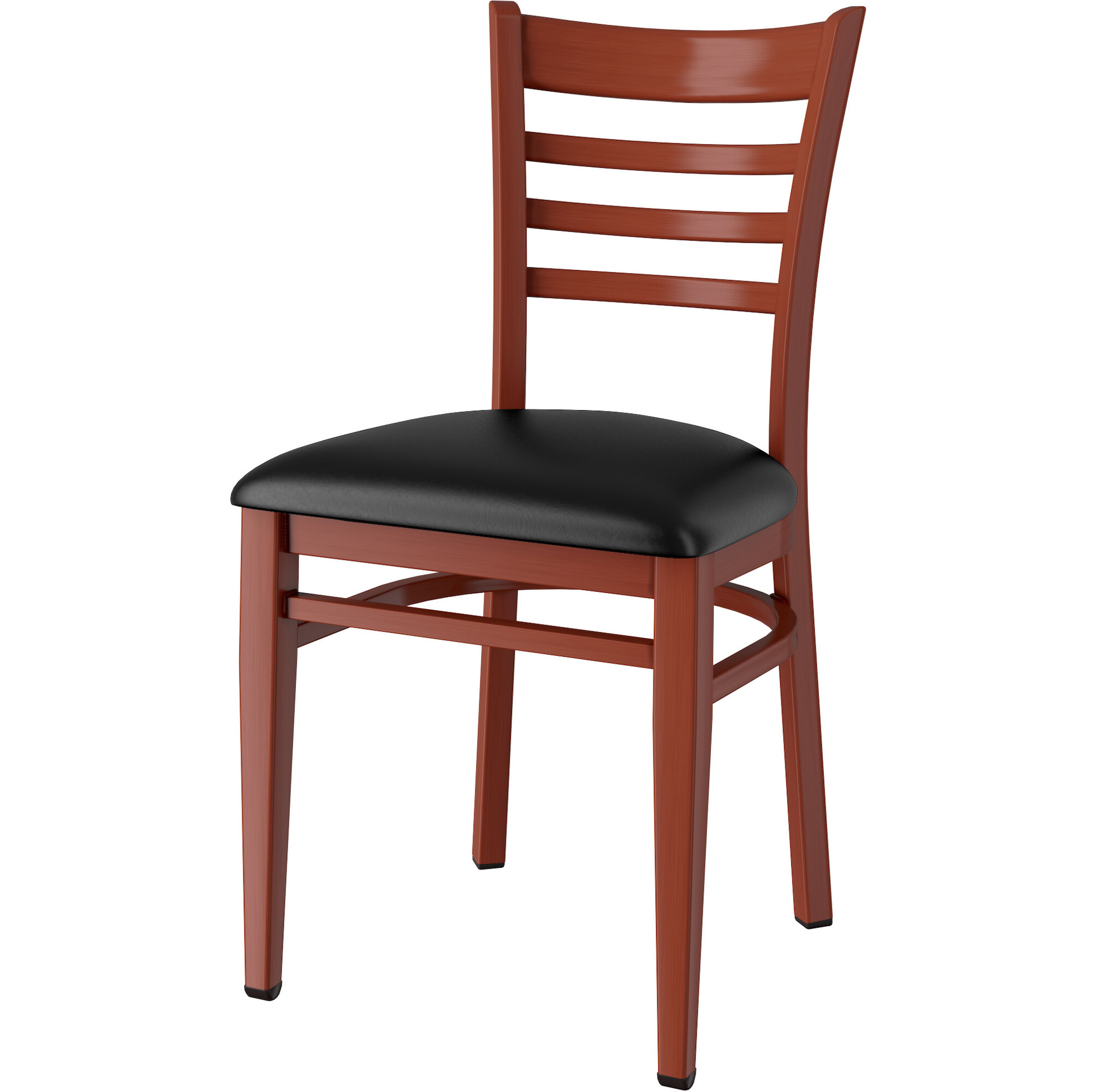 Lancaster Table & Seating Spartan Metal Ladder Back Chair with Mahogany Wood Grain Finish and Black Vinyl Seat - Assembled