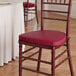 This cushion features a 2" thick polyurethane sponge interior to ensure that all guests are seated comfortably at any event. The attractive wine red color enhances your event's decor, complementing the chair's upscale appearance. Give your event space an eye-catching, yet comfortable upgrade with this cushion.