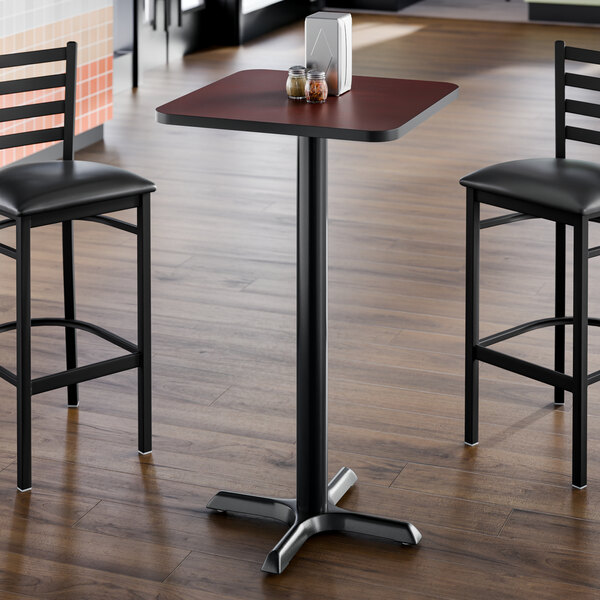 Take the guess-work out of selecting compatible table tops and bases with this 24" x 24" reversible cherry / black table top and cross base plate! This table gives your establishment a modern look and provides your guests a stable place to comfortably enjoy their drinks and food! From the strong, sturdy cast iron base plate and spider, to the sleek black column and durable laminated table top, this table is an all-in-one addition to any establishment. Plus, with a contemporary square shape, it's sure to add aesthetic appeal to any establishment. The compact 24" x 24" design comfortably seats up to 2 guests without taking up too much room, making it the perfect choice for any restaurant, pizza shop, or cafeteria!