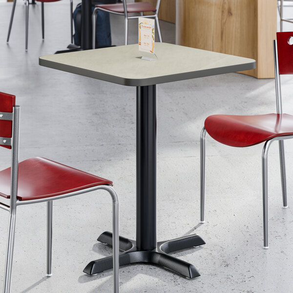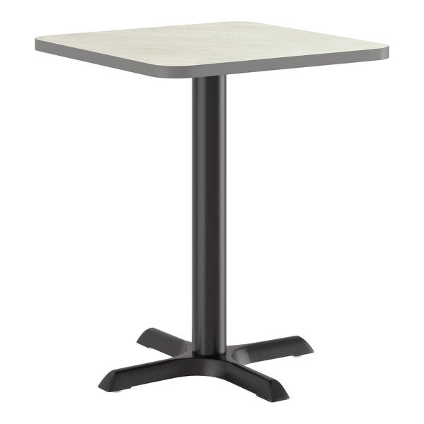 Take the guess-work out of selecting compatible table tops and bases with this 24" x 24" reversible gray / white table top and cross base plate! This table gives your establishment a modern look and provides your guests a stable place to comfortably enjoy their drinks and food! From the strong, sturdy cast iron base plate and spider, to the sleek black column and durable laminated table top, this table is an all-in-one addition to any establishment. Plus, with a contemporary square shape, it's sure to add aesthetic appeal to any establishment. The compact 24" x 24" design comfortably seats up to 2 guests without taking up too much room, making it the perfect choice for any restaurant, pizza shop, or cafeteria!