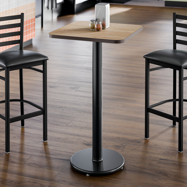 Take the guess-work out of selecting compatible table tops and bases with this 24" x 24" reversible white birch / ash table top and round base plate! This table gives your establishment a modern look and provides your guests a stable place to comfortably enjoy their drinks and food! From the strong, sturdy cast iron base plate and spider, to the sleek black column and durable laminated table top, this table is an all-in-one addition to any establishment. Plus, with a contemporary square shape, it's sure to add aesthetic appeal to any establishment. The compact 24" x 24" design comfortably seats up to 2 guests without taking up too much room, making it the perfect choice for any restaurant, pizza shop, or cafeteria!