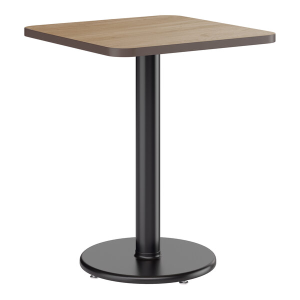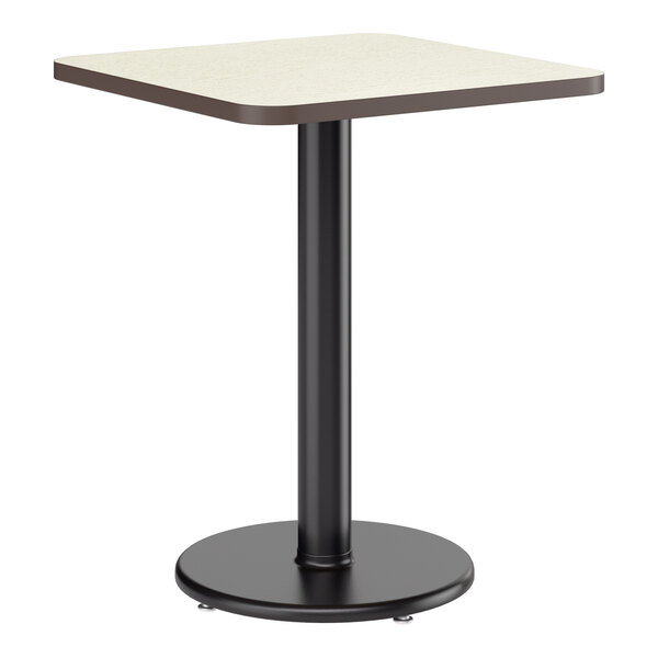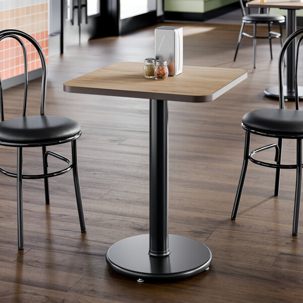 Take the guess-work out of selecting compatible table tops and bases with this 24" x 24" reversible white birch / ash table top and round base plate! This table gives your establishment a modern look and provides your guests a stable place to comfortably enjoy their drinks and food! From the strong, sturdy cast iron base plate and spider, to the sleek black column and durable laminated table top, this table is an all-in-one addition to any establishment. Plus, with a contemporary square shape, it's sure to add aesthetic appeal to any establishment. The compact 24" x 24" design comfortably seats up to 2 guests without taking up too much room, making it the perfect choice for any restaurant, pizza shop, or cafeteria!