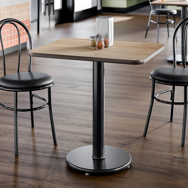 Take the guess-work out of selecting compatible table tops and bases with this 24" x 30" reversible white birch / ash table top and round base plate! This table gives your establishment a modern look and provides your guests a stable place to comfortably enjoy their drinks and food! From the strong, sturdy cast iron base plate and spider, to the sleek black column and durable laminated table top, this table is an all-in-one addition to any establishment. Plus, with a contemporary square shape, it's sure to add aesthetic appeal to any establishment. The compact 24" x 30" design comfortably seats up to 2 guests without taking up too much room, making it the perfect choice for any restaurant, pizza shop, or cafeteria!