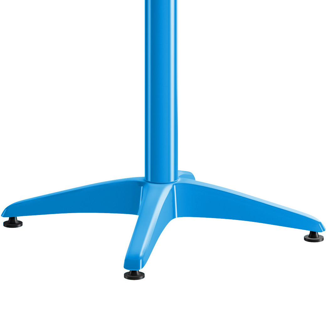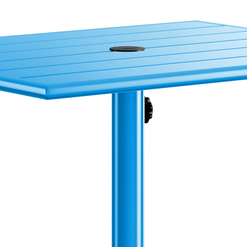 Made of strong, powder-coated aluminum, this corrosion-resistant table is built to withstand any weather conditions. Its smooth surface features a bright and lively blue color that's sure to match your decor and complement the summer skies and clouds! Thanks to its UV-resistant finish, the color won't fade over time even when left in the sun for longer periods. Enjoy this table's long-lasting durability for years to come.
