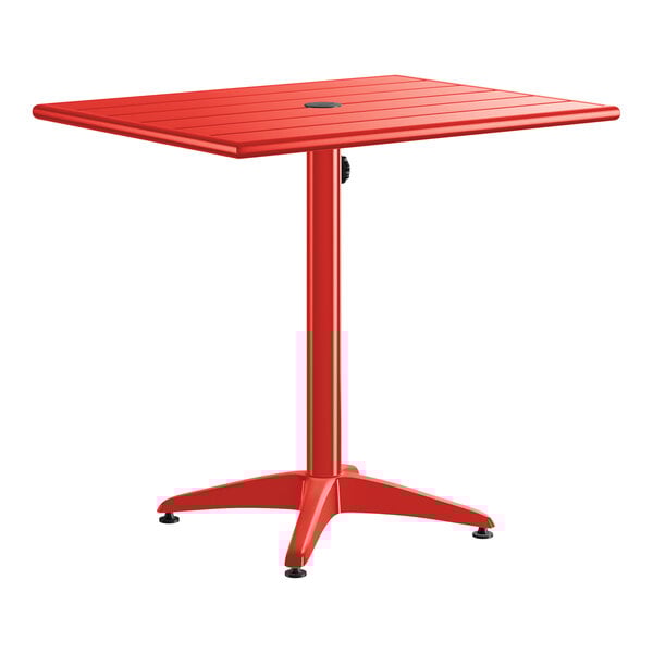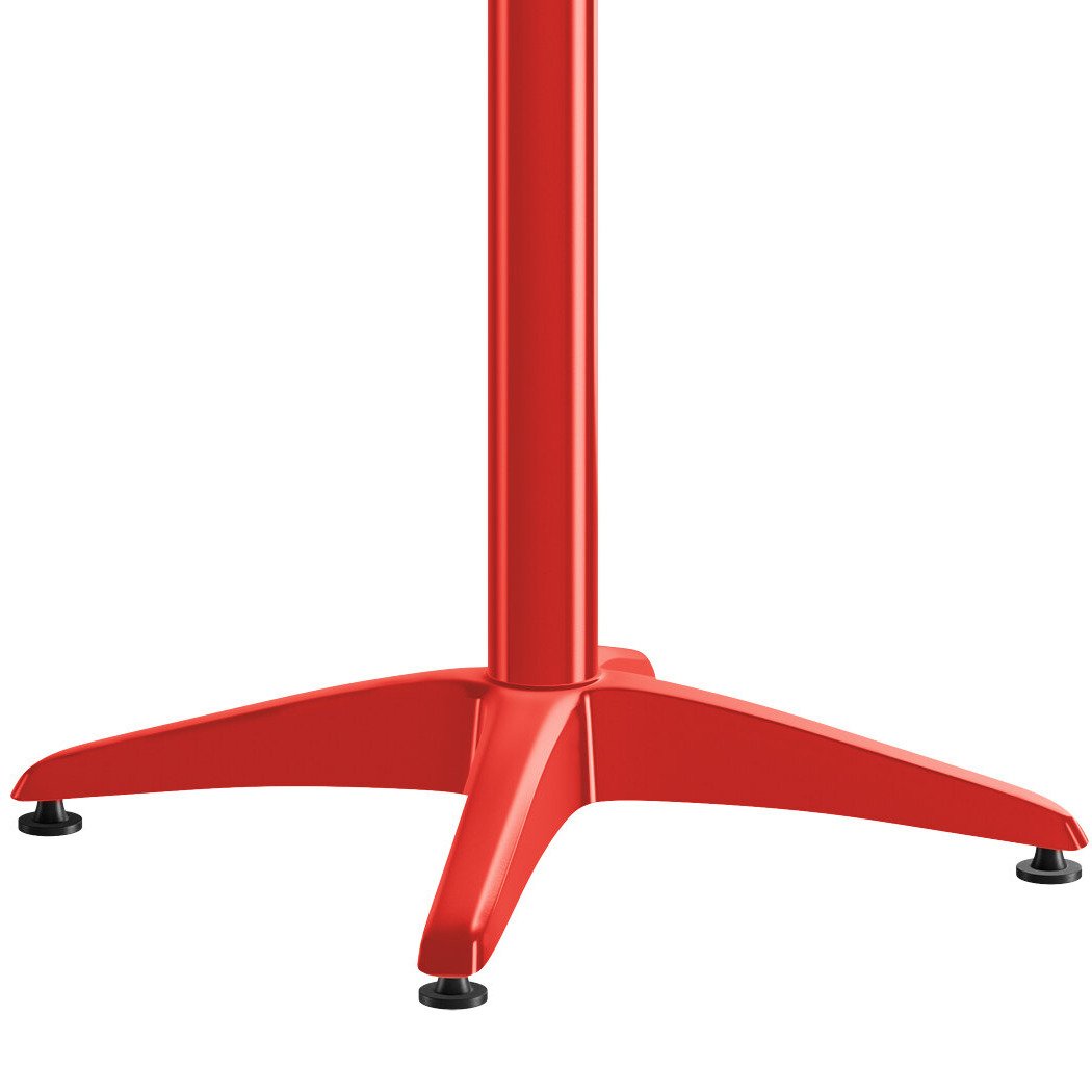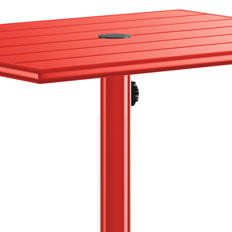 Made of strong, powder-coated aluminum, this corrosion-resistant table is built to withstand any weather conditions. Its smooth surface features a bright and lively red color that's sure to match your decor and complement the summer skies and clouds! Thanks to its UV-resistant finish, the color won't fade over time even when left in the sun for longer periods. Enjoy this table's long-lasting durability for years to come.
