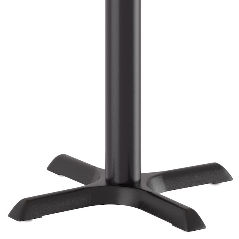 Plus, it comes with a black, powder-coated finish that promotes a professional appearance and matches any color table top. Made of durable cast iron, this base plate is sure to provide long-lasting use. It includes pre-drilled holes, making it easy to insert glides to prevent your floors from being scratched.