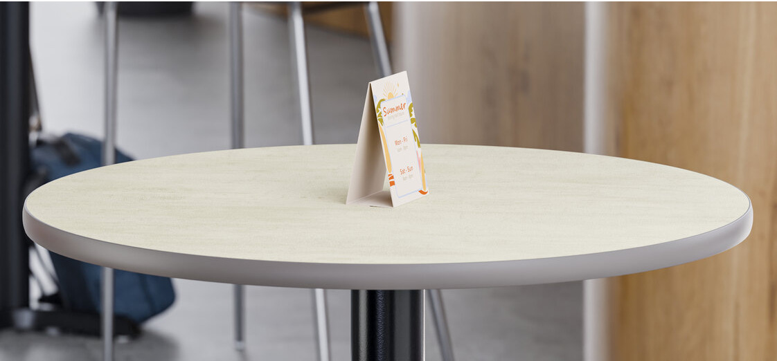 The table top is made from durable laminate materials that are sure to stand up to long-term use in your restaurant or deli. This material makes the table top incredibly easy to clean. The charcoal vinyl molding on this product prevents your table from any unattractive chipping and scuffing, keeping your table looking great through general wear and tear.