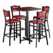 Lancaster Table & Seating 30" x 30" Reversible Cherry / Black Bar Height Dining Set with Mahogany Bar Stool and Wood Seat