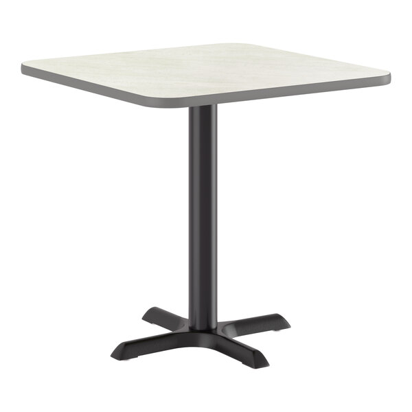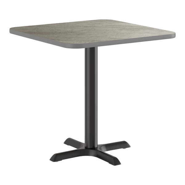 Take the guess-work out of selecting compatible table tops and bases with this 30" x 30" reversible gray / white table top and cross base plate! This table gives your establishment a modern look and provides your guests a stable place to comfortably enjoy their drinks and food! From the strong, sturdy cast iron base plate and spider, to the sleek black column and durable laminated table top, this table is an all-in-one addition to any establishment. Plus, with a contemporary square shape, it's sure to add aesthetic appeal to any establishment. The compact 30" x 30" design comfortably seats 2 to 4 guests without taking up too much room, making it the perfect choice for any restaurant, pizza shop, or cafeteria!