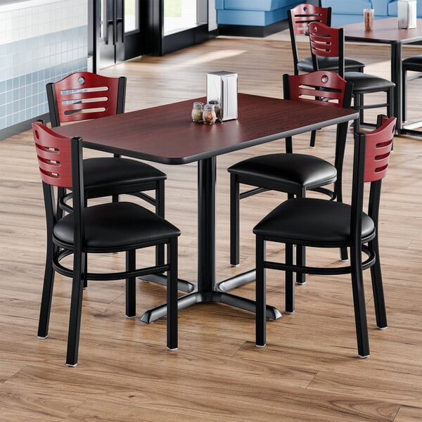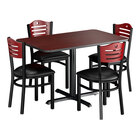 Lancaster Table & Seating 30" x 48" Reversible Cherry / Black Standard Height Dining Set with Mahogany Chair and Padded Seat