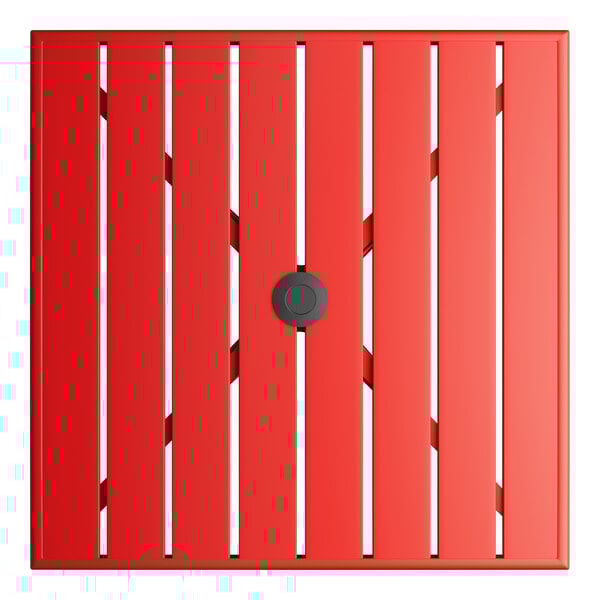 Lancaster Table & Seating 32" x 32" Red Powder-Coated Aluminum Dining Height Outdoor Table with Umbrella Hole