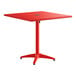 Enjoy the breezy summer weather with this Lancaster Table & Seating 32" x 32" red powder-coated aluminum dining height outdoor table with umbrella hole!