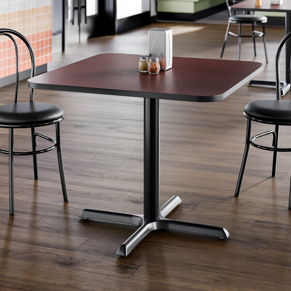 This Lancaster Table & Seating square reversible table top allows you to change the look of your business.
