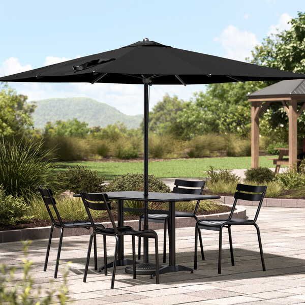Lancaster Table & Seating 9' Square Raven Black Pulley Lift Black Aluminum Umbrella