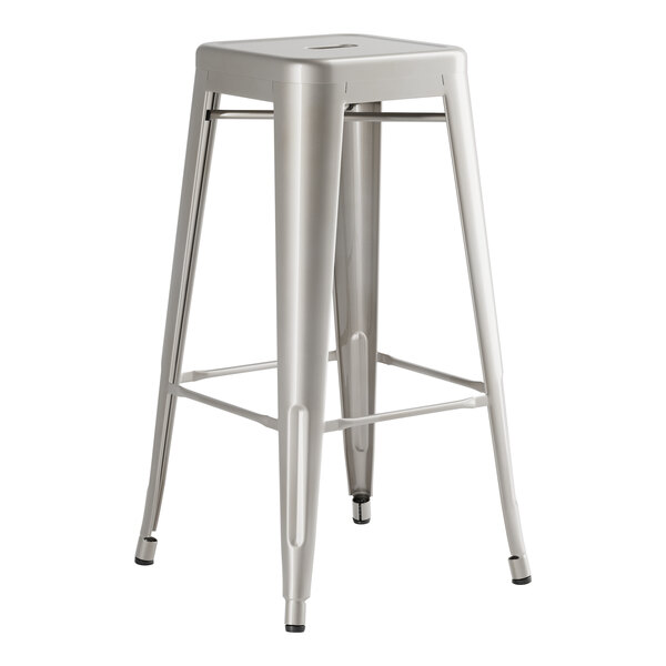 Boasting a 400 lb. weight capacity, this industrial barstool includes a footrest to reduce pressure on your customers' legs and lower backs. To ensure that your customers are free to enjoy your signature drinks, appetizers, entrees, and desserts, it features a comfortable seat with a raised, rounded lip for a sleek, minimalist look.