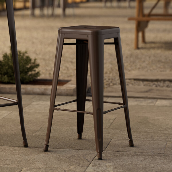 This stool is made of durable steel and coated to withstand years of use. The copper color adds a sleek, modern touch to any setting and is sure to be a contemporary design choice that guests love. Comfortable and stylish, this strong yet lightweight stool is an excellent choice for your indoor or outdoor dining area. To save time and hassle, this barstool ships fully assembled.