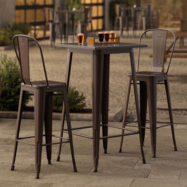 This set is made of durable steel and coated to withstand years of use. The copper color adds a sleek, modern touch to any setting and is sure to be a contemporary design choice that guests love. Comfortable and stylish, this strong yet light weight set is an excellent choice for your indoor or outdoor dining area. To save you money on shipping costs, the table ships unassembled and the stools ship with the backrests detached. All required assembly hardware is included so you can quickly set it up in its proper space and let your guests enjoy!