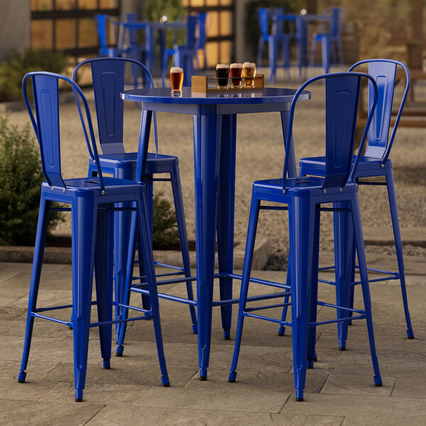 This set is made of durable steel and coated to withstand years of use. The vibrant blue-quartz color adds a fun, colorful touch to any setting and is sure to be a contemporary design choice that guests love. Comfortable and stylish, this strong yet lightweight set is an excellent choice for your indoor or outdoor dining area. To save you money on shipping costs, the table ships unassembled and the stools ship with the backrests detached. All required assembly hardware is included so you can quickly set it up in its proper space and let your guests enjoy!