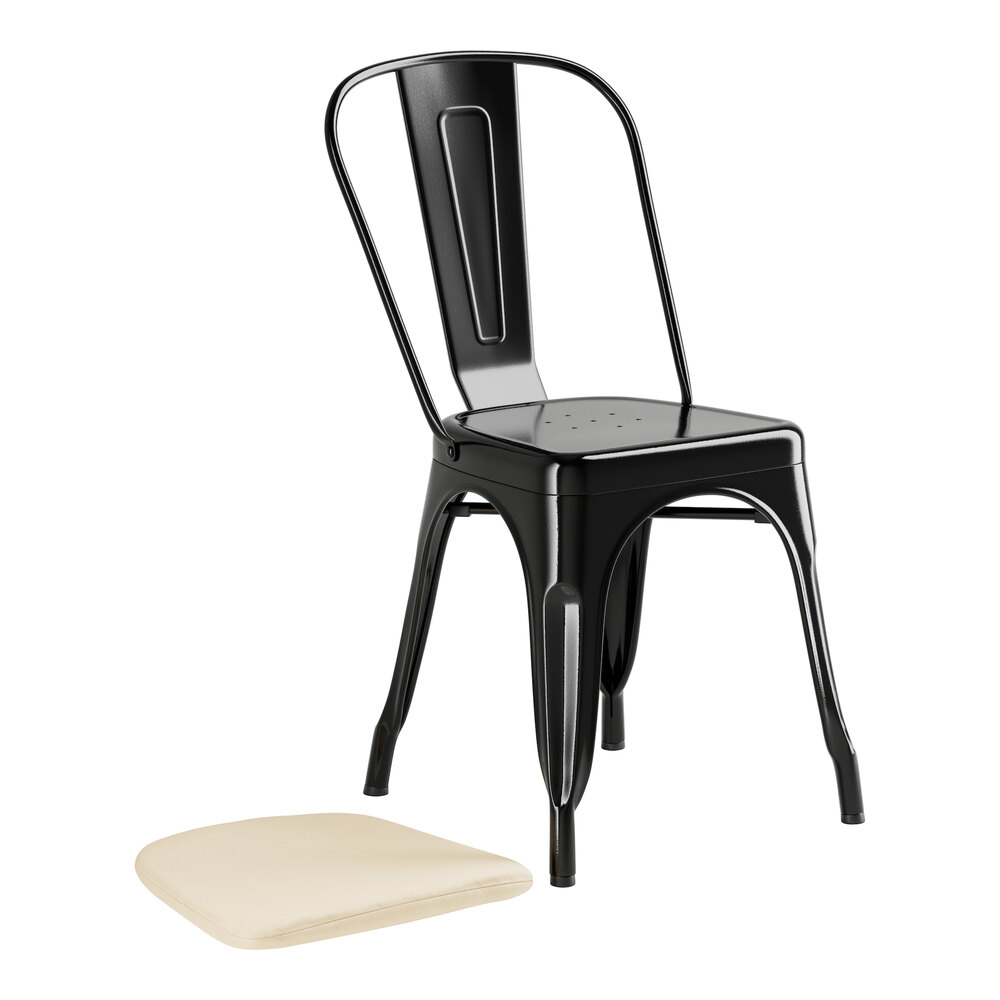 This chair is made of durable steel and coated to withstand years of use. The onyx-black color adds a sleek, modern touch to any setting and is sure to be a contemporary design choice that guests love. Comfortable and stylish, this strong yet lightweight chair is an excellent choice for your indoor or outdoor dining area. To save time and hassle, this chair ships assembled. The cushion ships detached from the chair.